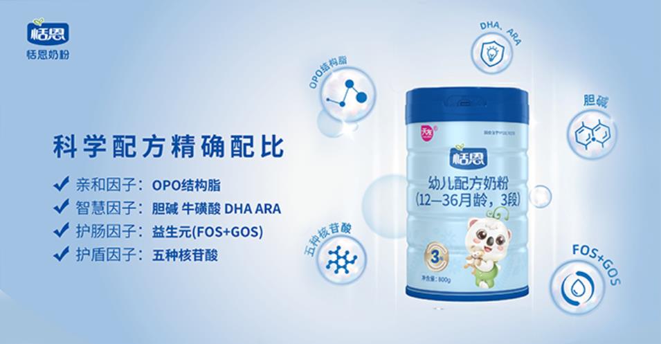 恬恩奶粉的配方由重庆市乳制品工程技术研发中心研发,总结亚洲人群母乳精华,匠心打造第三代OPO配方,更贴近中国母乳结构,更适合中国宝宝体